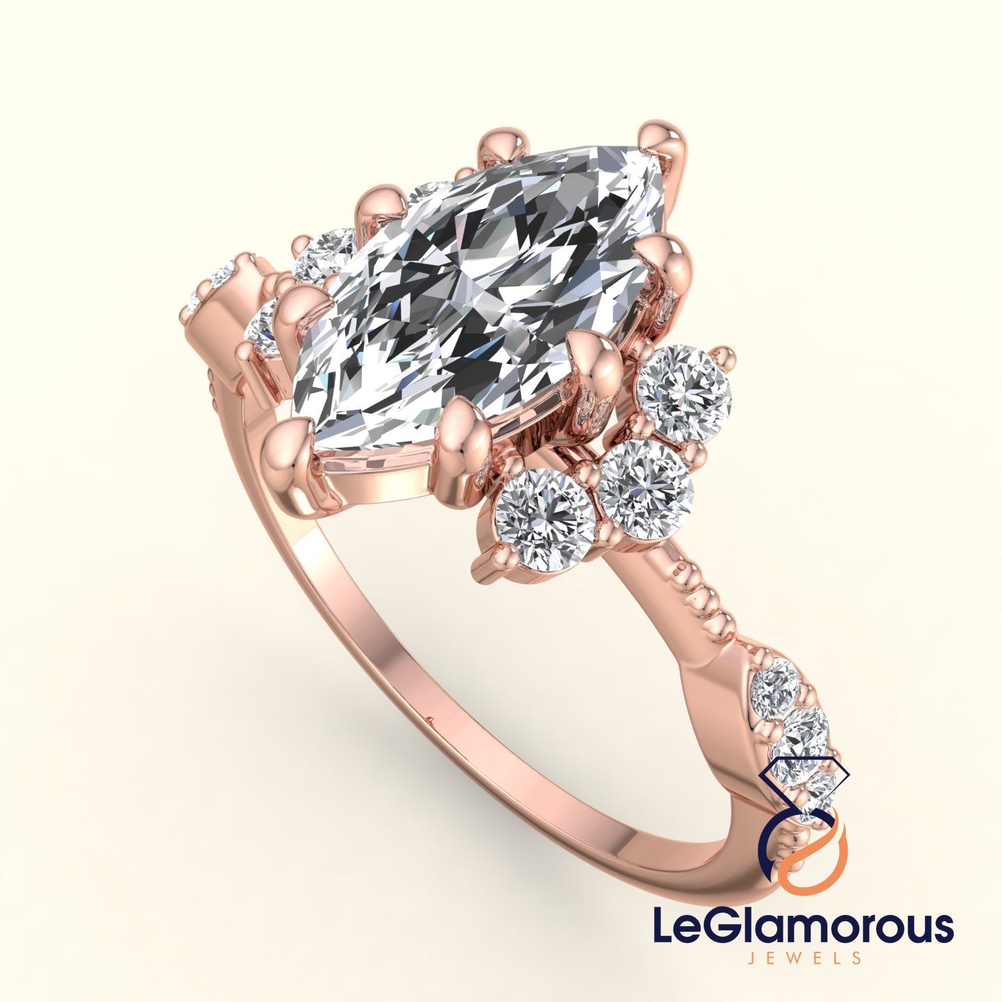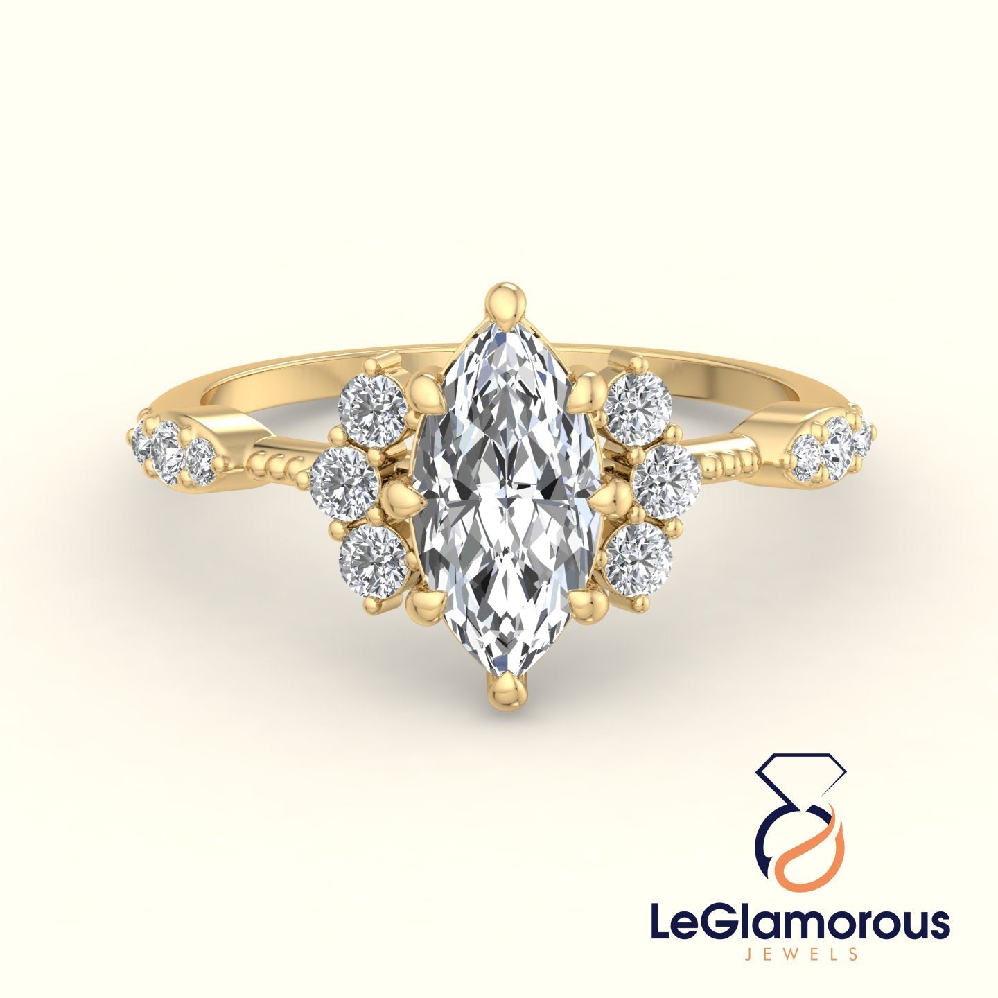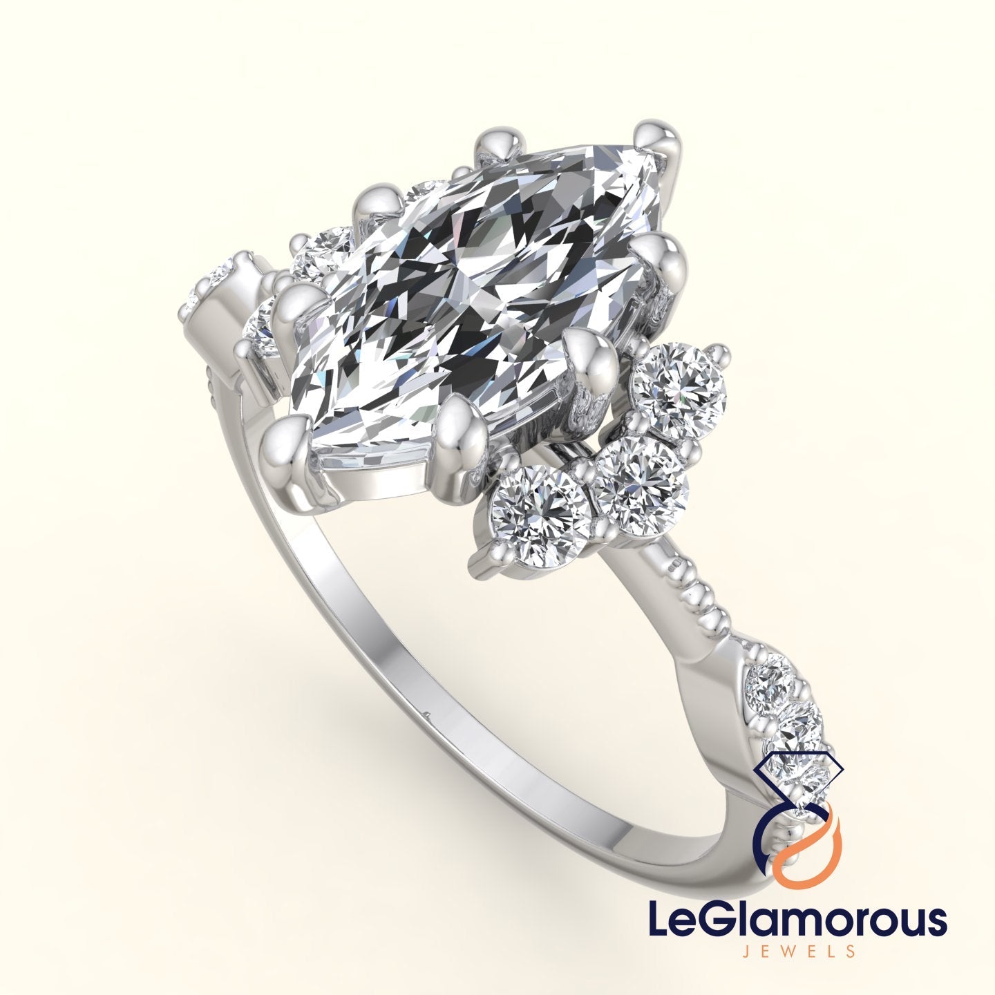 Vintage Engagement Ring, Marquise Cut Moissanite Diamond Ring