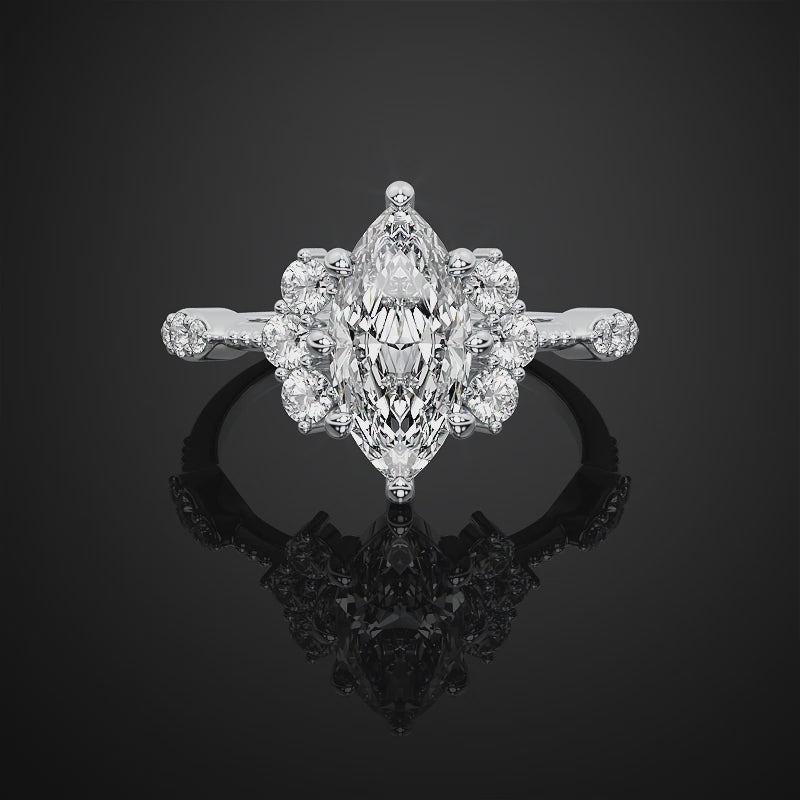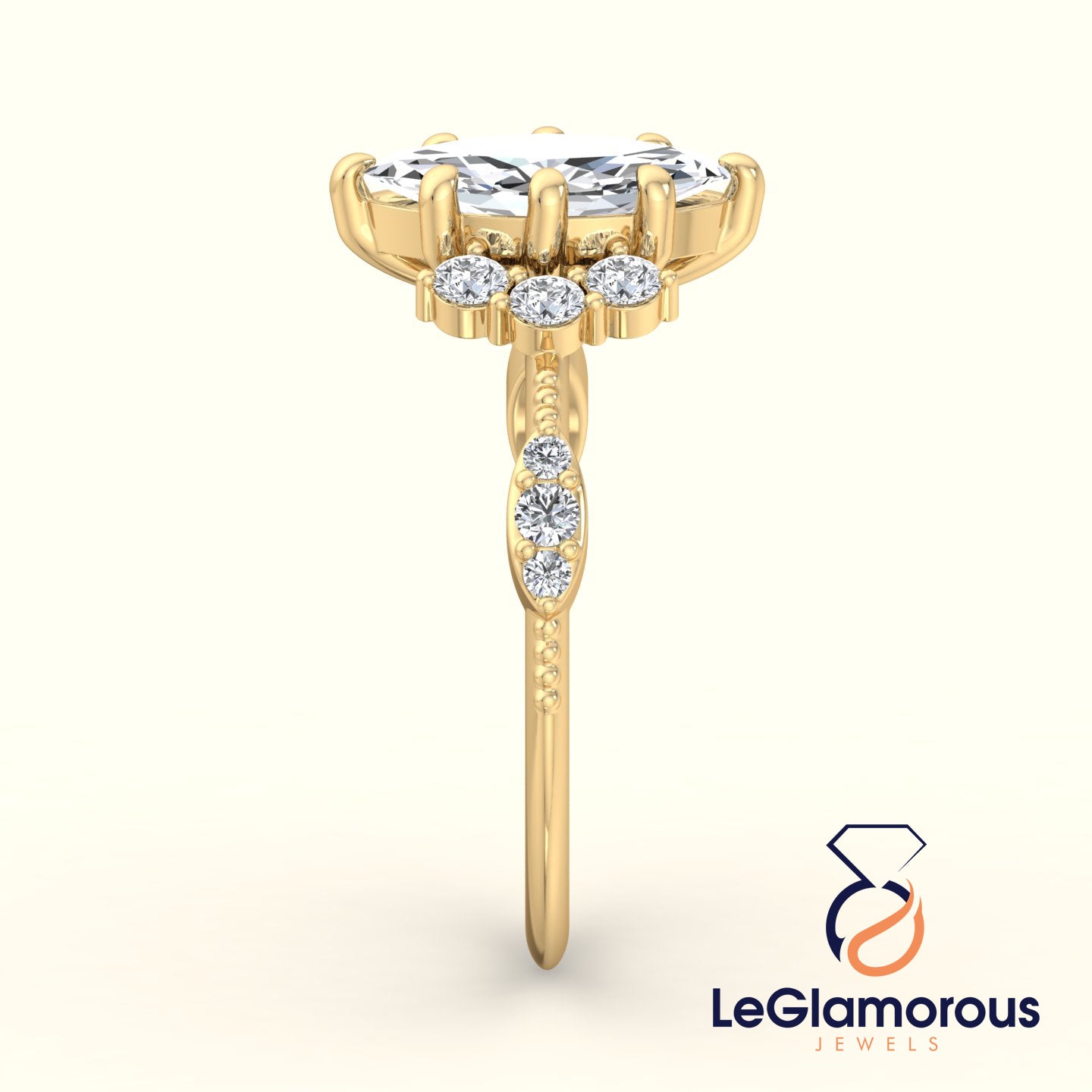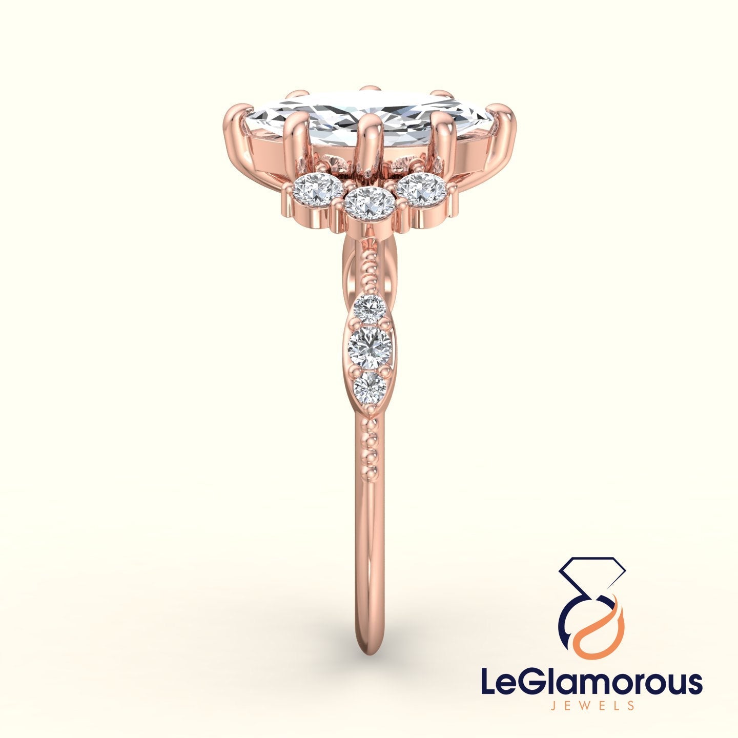 Vintage Engagement Ring, Marquise Cut Moissanite Diamond Ring