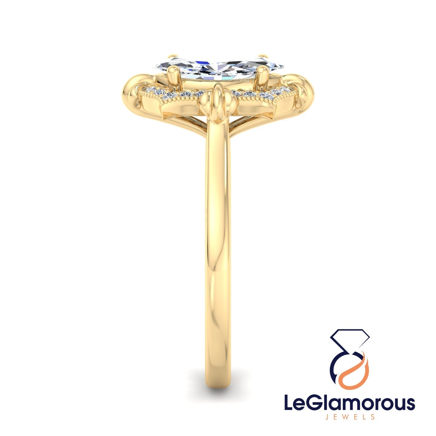 Vintage Marquise Cut Moissanite Diamond Engagement Ring For Her