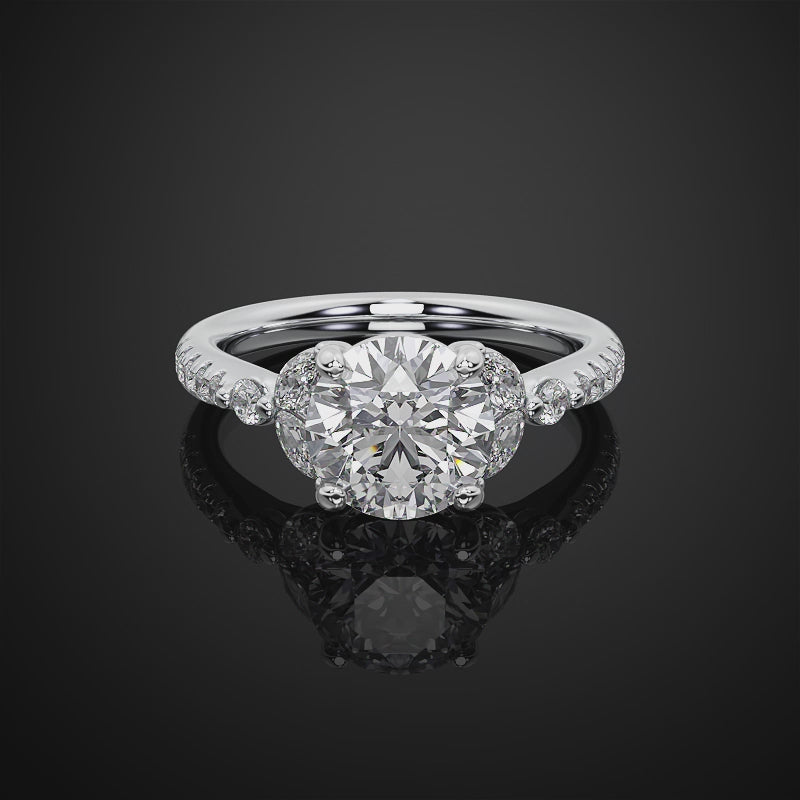 Round Cut Lab Grown Diamond Pave Setting Engagement Ring For Her
